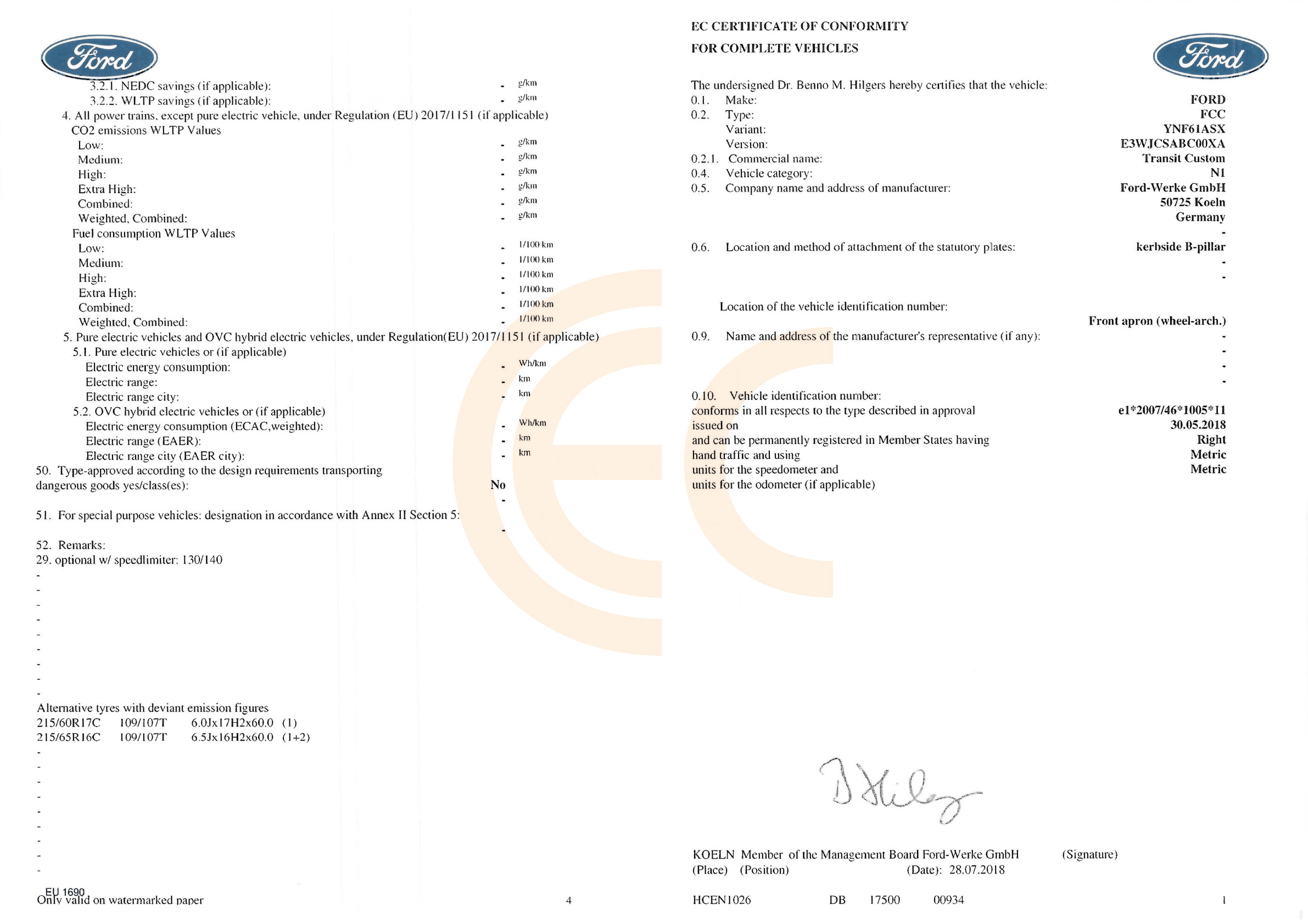 Get your official, authentic FORD Certificate of Conformity (COC), recognized across all EU countries. This document proves your vehicle meets EU regulations and is required for registration or import in most European states. Issued by FORD accepted by all authorities.